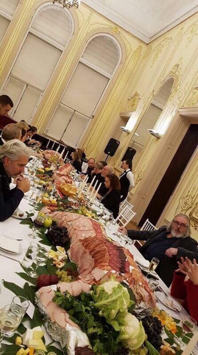 Банкетът след откриването на една изложба в столицата бе най-обсъжданата тема в културата през уикенда. В петък вечерта балната зала в Националната художествена галерия, филиал Двореца, посрещна край две дълги маси гостите на ретроспективната изложба на Ода Жон. Храната на тях бе аранжирана с формите на полегнали жени, оприличени от някои на русалки – голите части от телата им бяха покрити с резени колбаси, а главите бяха от зелки карфиол… Звучи фолклор и опера.