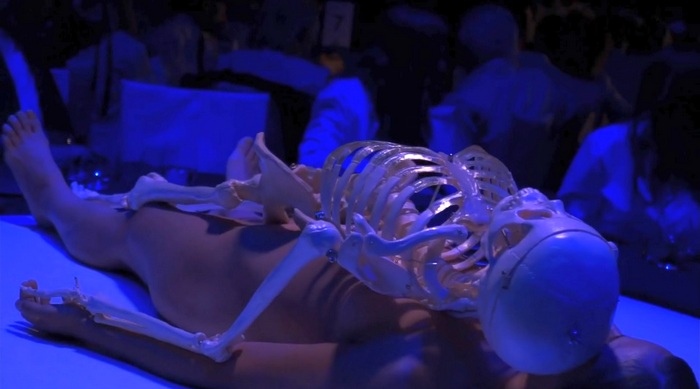 Защо се сетиха точно за „Ритъм 0“ не е много ясно. Има доста по-подходящи кандидати от него. Например през 2011 г. същата Марина Абрамович беше поканена да направи вечеря-спектакъл за Музея за модерно изкуство в Лос Анжелис (MОCA). Някой може ли да се сети какво имаше в средата на огромната кръгла маса? Не е трудно, почти познахте – легнала гола жена, а върху нея – скелет.