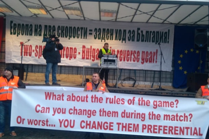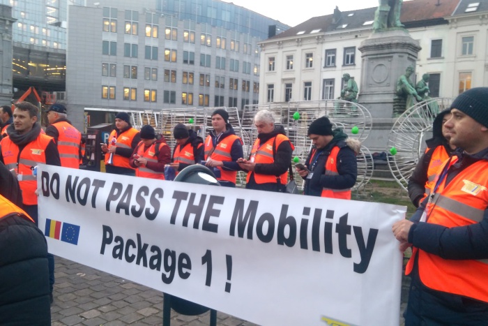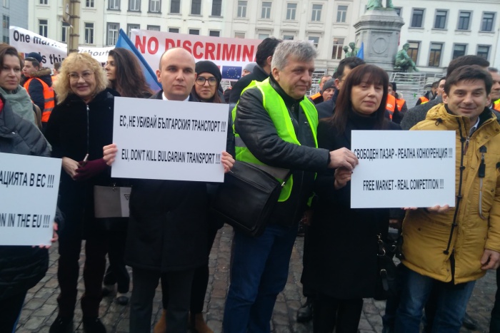 През това време в Европейския парламент тече заседанието на транспортната комисия. В него участва и министърът на транспорта Росен Желязков - той бе специално приветстван в залата. България няма свой постоянен представител в тази комисия, но четирима от родните евродепутати са успели да се сменят със свои колеги от други страни - за да могат да гласуват "против" текстовете от пакета за мобилност, приети вече от Европейския съвет, срещу които е протестът.