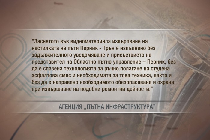 От АПИ обясниха, че извършените дейности са в нарушение на договора между агенцията и изпълнителя и затова няма да бъдат платени. Фирмата изпълнител остава длъжна да извърши качествен ремонт.