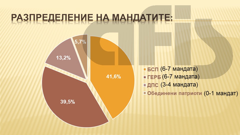 Така БСП и ГЕРБ ще вземат по 6-7 мандата, ДПС - 3-4, а "патриотите" - може би един мандат, е прогнозата на "Афис" спрямо ситуацията към този момент.