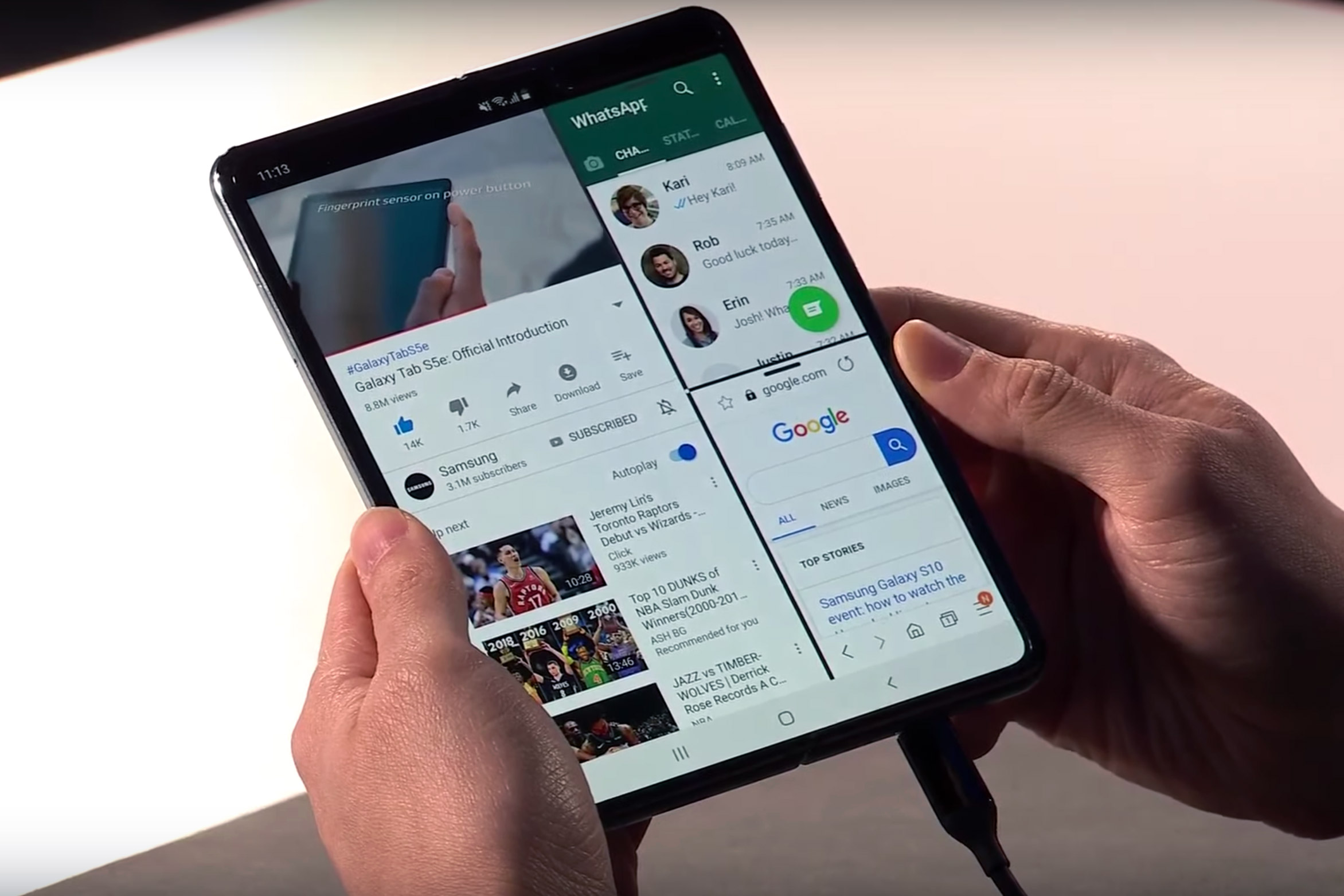 Първи бе Samsung Galaxy Fold, с два екрана - за всеки случай, единият от които се разтваря в средата. Разбира се, освен футуристичният дисплей, новият Galaxy Fold е наблъскан с максимумът, който може да се вкара в телефон от хардуерна гледна точка.