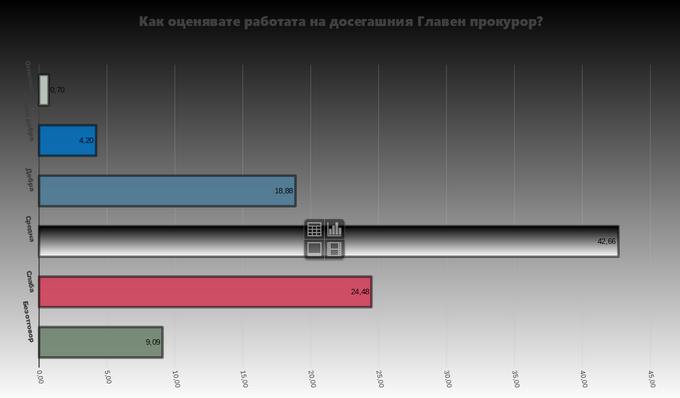 Цацаров получава "Среден 3" по шестобалната скала, като над 2/3 смятат, че прокуратурата на практика се е провалила в работата си, както и главният прокурор, който е нейна "глава".