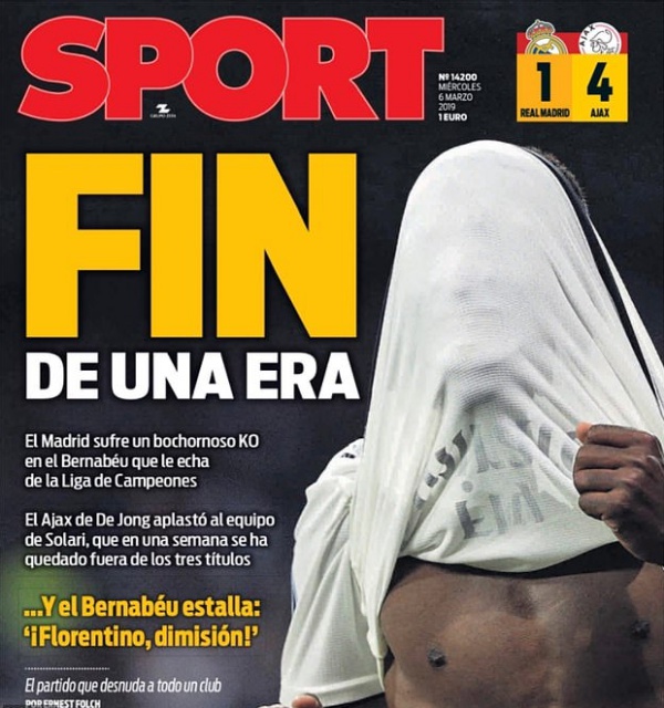 Краят на една ера. Това е лайтмотивът в испанската и световната преса след отпадането на "Реал" (Мадрид) от "Аякс" (2:1 и 1:4) още на осминафиналите в Шампионската лига.