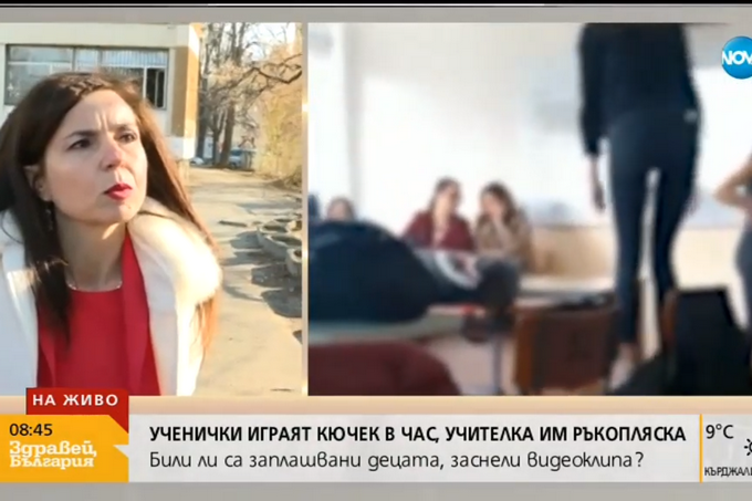 Ученички в 8-и клас са заснети как играят кючек, а учителки им пляскат. Това се случва в столичното 203-то училище, съобщава Нова тв. Става въпрос за Профилирана езикова гимназия "Св. Методий" в столичния ж.к. "Бъкстон", а часът бил по английски.