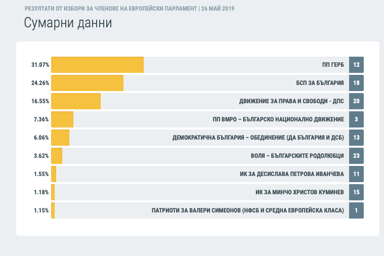 Официално: ЦИК обяви окончателните резултати от изборите за представители в Европейския парламент, проведени на 26 май. Няма изненади спрямо предварителната неофициална информация.