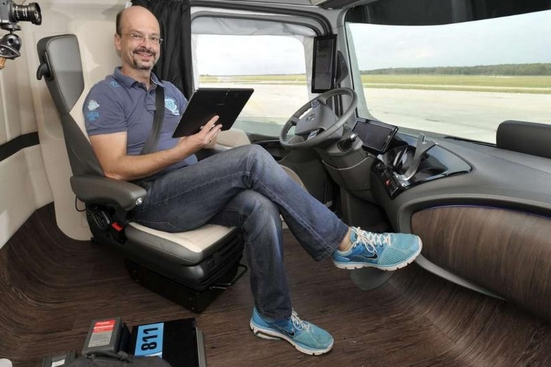 Камионът на бъдещето се движи на автопилот. Няма проблем шофьорът да вземе главния компютър и да сърфира из интернет. Това по никакъв начин не влияе на основната дейност на умната машинка - да изпълнява зададените параметри и при нужда да ги коригира, за да не се приближи опасно близо до друго возило.