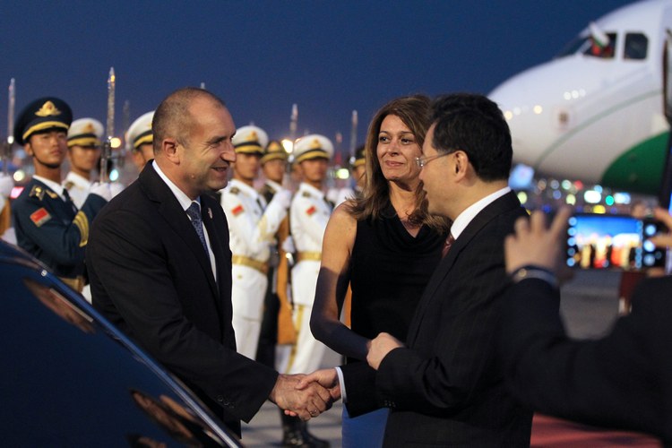 Официалното посрещане на Радев в Пекин, където негов домакин е китайският президент Си Цзинпин, включваше строени войници, малки деца с букети и знамена.