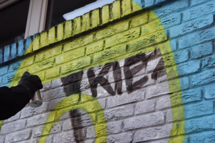 Първоначално инициативата е на граждански организации. Органите на реда и общинарите веднага я прегръщат. Под зоркия поглед на полицаите няколко художници само за часове успяха в петък за променят облика на сградите. На мястото на неоцанистките символи артистите "постявят" красиви, цветни рисунки.