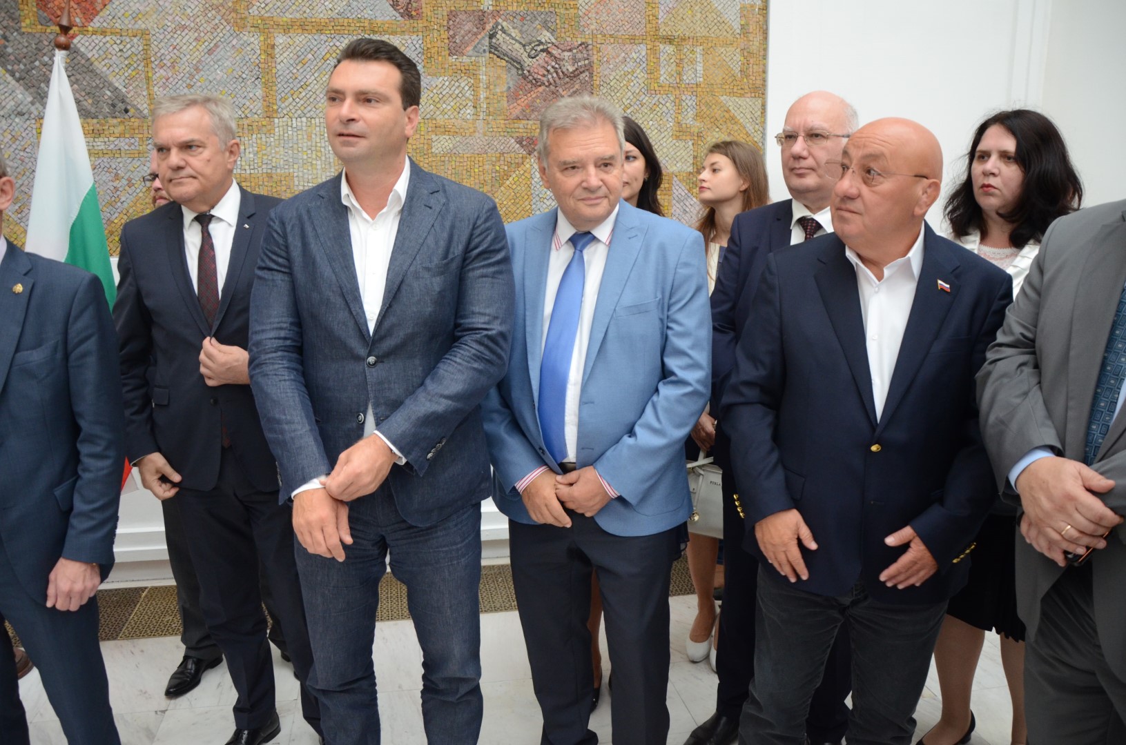 Разговорите в залата бързо замлъкнаха с пристигането на руския посланик Анатолий Макаров. На импровизирана сцена около него се наредиха политици и общественици. А сред тях висши функционери на БСП – Калоян Паргов, Георги Гергов, Таско Ерменков, Георги Пирински, лидерът на АБВ Румен Петков, депутатът от „Атака“ и зам.председател на движение „Русофили“ Станислав Станилов. Изложбата уважиха и депутатът на БСП Георги Свиленски, космонавтът Георги Иванов, дългогодишният министър на културата в годините на социализма Георги Йорданов, Красимир Премянов и др.