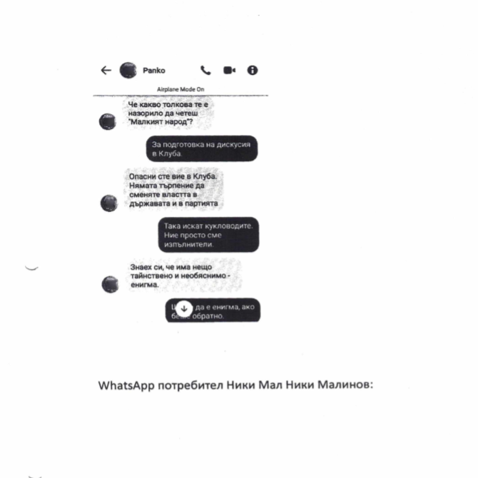 Натам чатът представлява забележителен спор между Ивелина, която убеждава Борисов, че той... има профил в Телеграм: