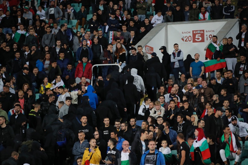 В същия момент няколко десетки запалянковци, облечени предимно в черно и с черни качулки, напуснаха стадиона от сектор "Б". Не е ясно дали те са замесени по накакъв начин. Отново по информация на БНТ групичката сама решила да си тръгне, за да не бъде обвинена в расизъм (долу).