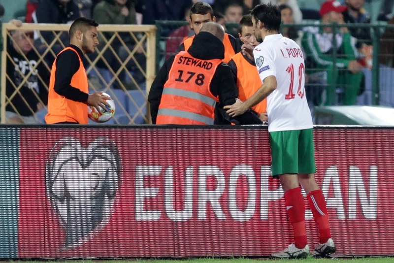 Някои от националите ни, начело с Ивелин Попов, разговаряха със стюарди и зрители. Това стана най-вече на почивката.