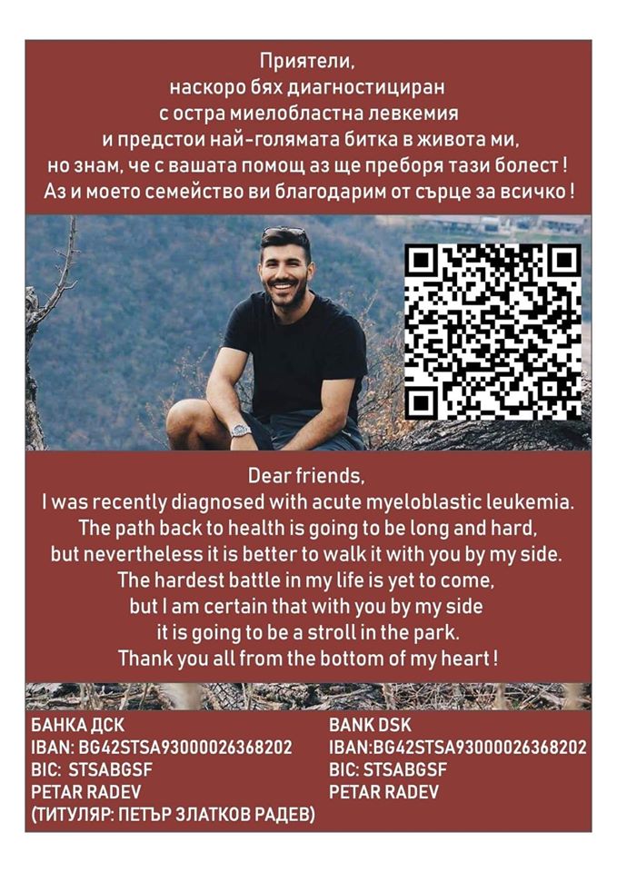 Петър Радев е 25-годишен студент по медицина от Пловдив. Няколко дни преди последния си държавен изпит той е диагностициран с остра миелоидна левкемия. Така и не успява да завърши и да се отдаде на благородната си професия. Но... той може пак да лекува.