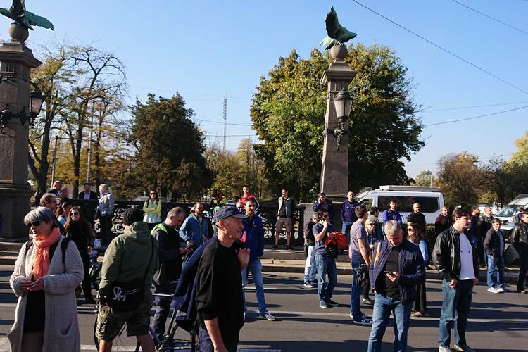 Демонстрантите минаха през Министерския съвет с викове "Оставка". Към 9,55 ч. тръгнаха към Орлов мост. По пътя блокираха кръстовището на СУ "Св. Климент Охридски".