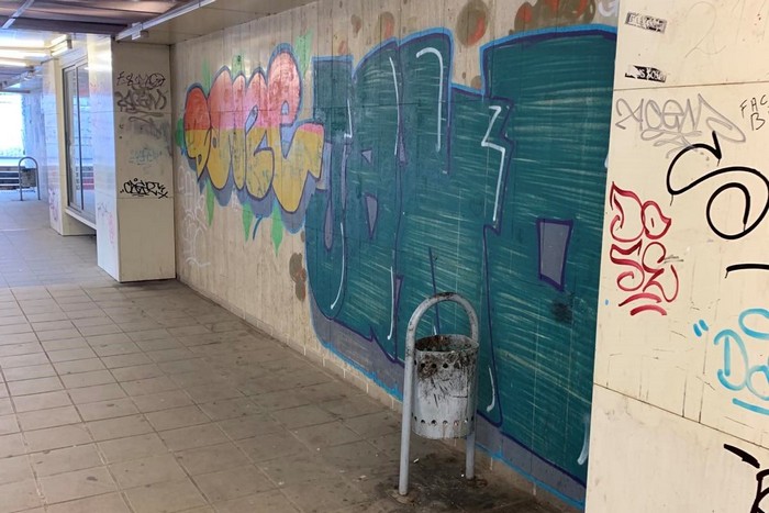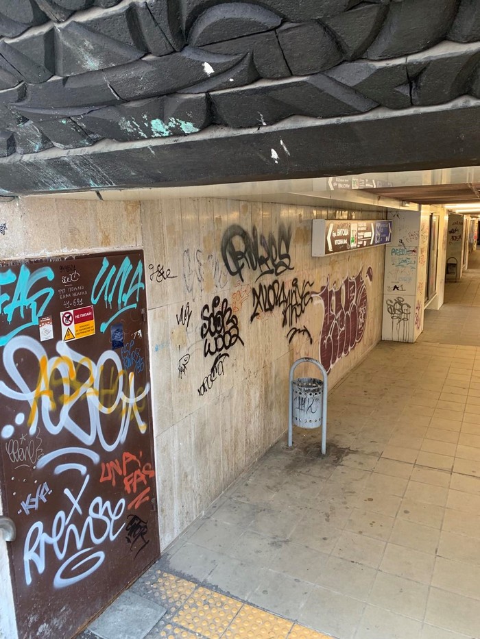 Пешеходната зона, свързваща бул. „Витоша“ с НДК, дълго време бе обект на нелегално драскане с графити, което създаваше мрачно усещане у стотиците граждани, преминаващи оттам всеки ден.