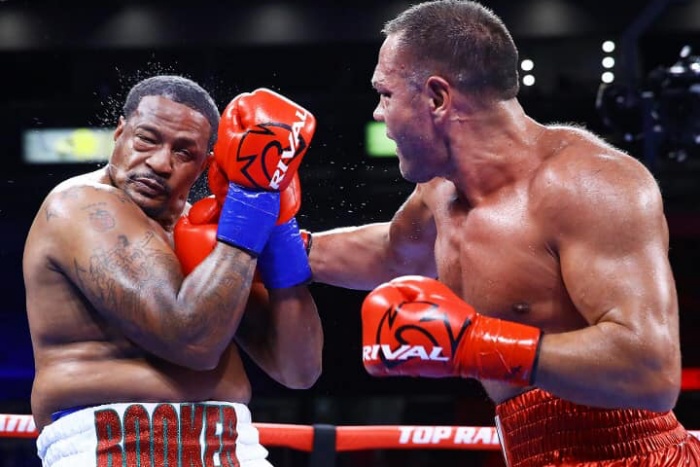 Лежалият 12 години в затвора Букър само се защитаваше и се видя, че е далеч от нивото на най-силните в дивизията. Изненада е, че остана на краката си цели десет рунда.