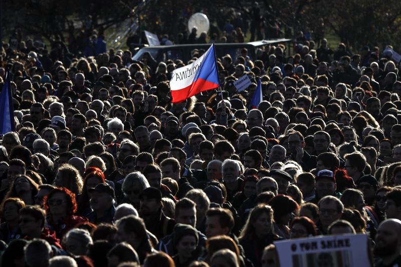 В Прага се състоя антиправителствена демонстрация в навечерието на 30-ата годишнина от Нежната революция, свалила комунистическия режим в Чехословакия, съобщи БНР.