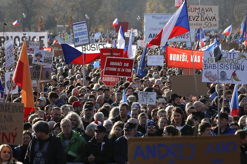 След 5-месечно затишие на недоволството хиляди чехи поискаха днес оставката на премиера и милиардер Андрей Бабиш в парка "Летна" - място на масови демонстрации, допринесли до голяма степен за падането на комунизма през 1989 г. Те дават на Бабиш краен срок до 31 декември да елиминира всички конфликти на интереси, произлизащи от бизнес и медийната му империя или да се оттегли. По данни на полицията участие в протеста са взели около четвърт милион души.