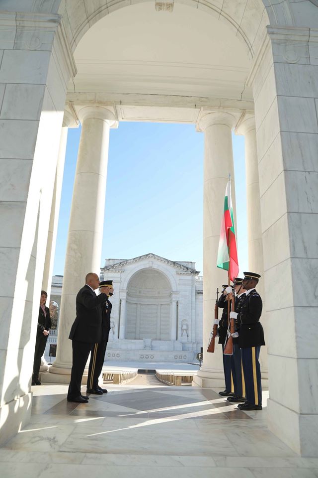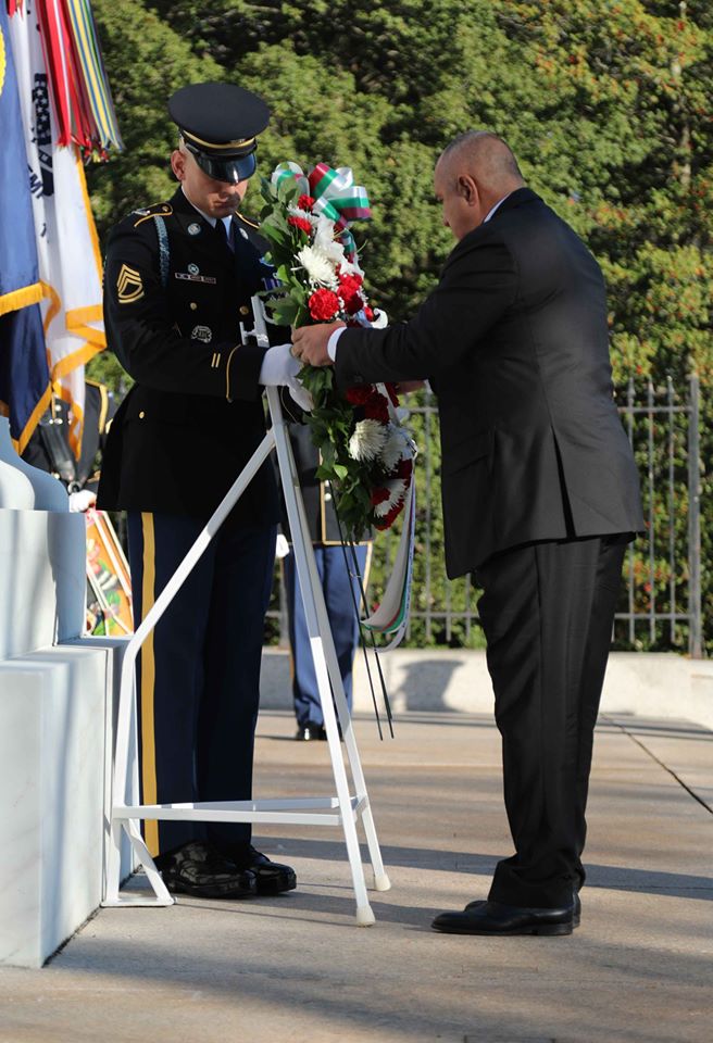По-рано днес с 21 топовни салюта Бойко Борисов и водената от него делегация бяха посрещнати в Мемориала на незнайния воин в Националния гробищен парк „Арлингтън“, щата Вирджиния, съобщиха от пресцентъра на МС.