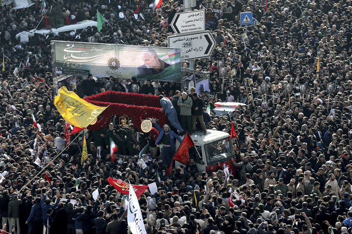 Докато поклонниците предаваха ковчезите на загиналите след офанзивата, наследникът на Солеймани, Есмаил Гаани, се закле, че за отмъщение ще прогони американските сили от региона.