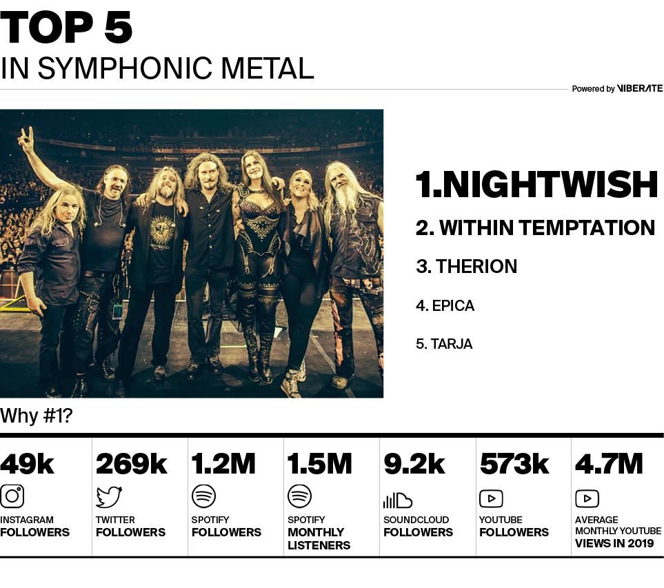 На върха са Nightwish - независимо с коя вокалистка: с "новата" (Флоор Янсен) или "старата" Таря Турунен, която пък сама присъства в класацията като име.