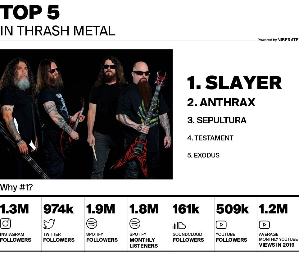 За критерии за значимост през 2019 г. са използвани най-вече виртуалните успехи на групите и изпълнителите, което сигурно е най-релевантното на днешно време, дори групата ти да е основана през 1981 г. (като "Металика" или "Слеър").