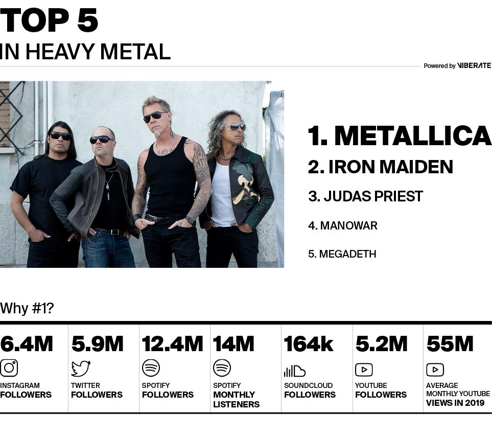 Макар и леко изненадващо, Топ 5 на хеви метъла се оглавява от Metallica.