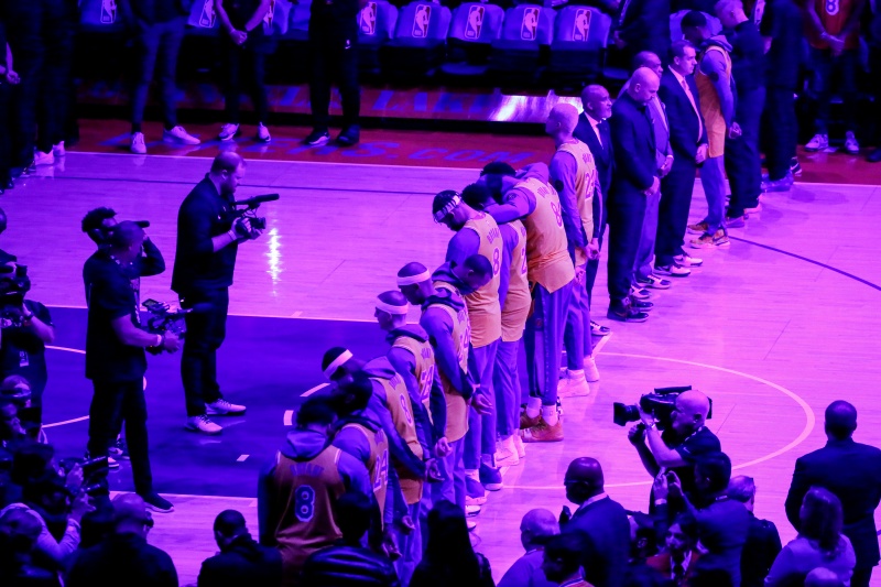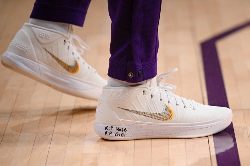 Играчите на "Лейкърс" излязоха да загряват с екипи с номерата и името на идола. На кецовете на повечето от тях можеха да се прочетат послания към Брайънт и Джиана.