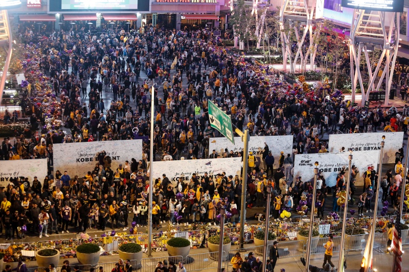 Леброн Джеймс, съотборник, съперник и приятел на Коби, излезе в средата на игрището и прочете имената на всички загинали и специално послание. Те грейнаха и на таблото в залата.