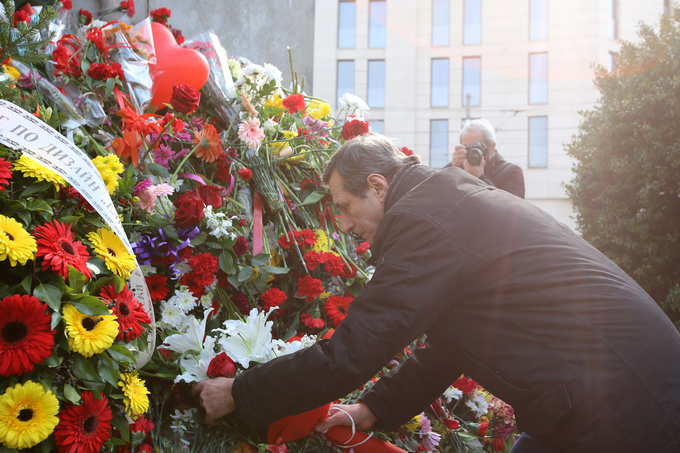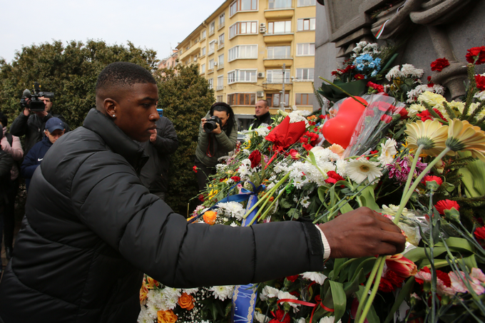 Традиционно в този ден и футболистите на "Левски" поднасят цветя.