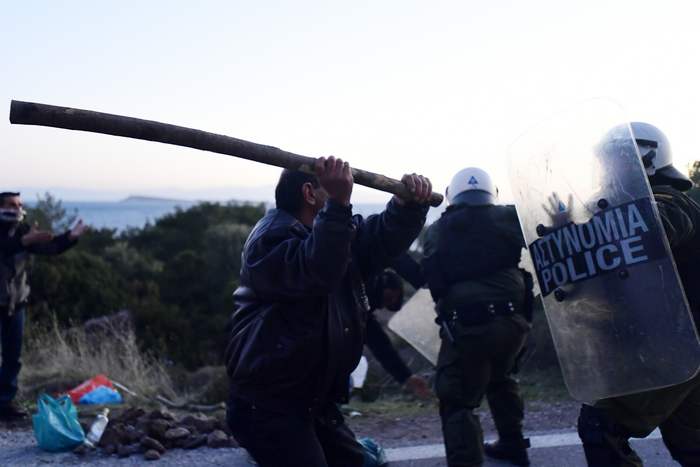 Ожесточени сблъсъци избухнаха рано днес между жителите и полицията на гръцките източноегейски острови Лесбос и Хиос, където правителството възнамерява да построи затворени центрове за бежанци и мигранти въпреки съпротивата от населението, съобщи атинският всекидневник "Катимерини".