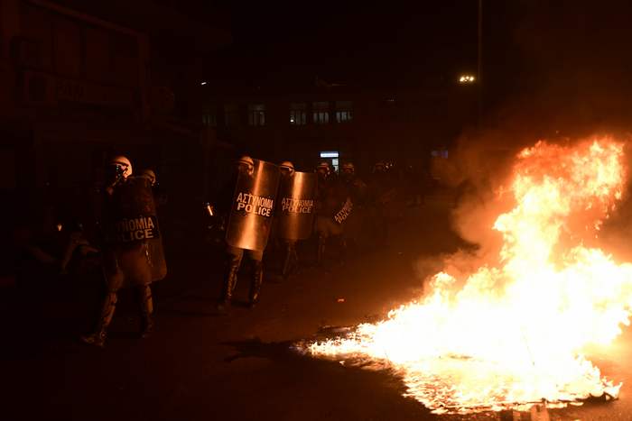 Пристанището на Митилини (другото име на Лесбос) се превърна в бойно поле за около два часа през изминалата нощ. Протестиращи бяха отблъснати от пристигналите 10 взвода от специалните полицейски сили за борба с безредиците (MAT) , които акостираха с кораб и се присъединиха към полицията на острова.