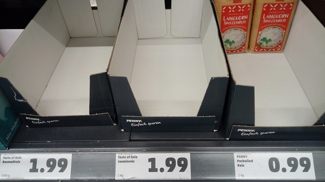 Говорителят на веригата „Алди-Норд“ Кристиан Залмен заяви, че се наблюдават „отделни покупки на големи количества трайни хранителни стоки и хигиенни продукти“. Това би могло да доведе до „изчерпване на някои продукти в нашите магазини“. Но говорителят успокоява: