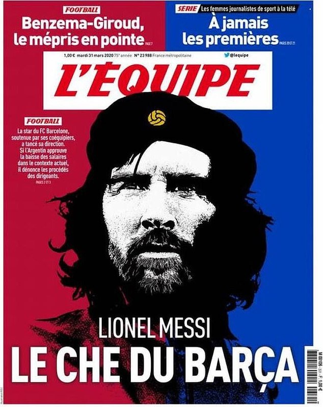 Лионел Меси като Че Гевара. Такъв колаж прави на челната си страница френският спортен вестник "Екип". Заглавието е "Лионел Меси - Че на Барса", а образът на футболиста е наложен върху най-известната снимка на неговия сънародник.