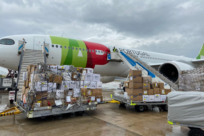 Медицински запаси от Китай пристигат на летището в Лисабон.