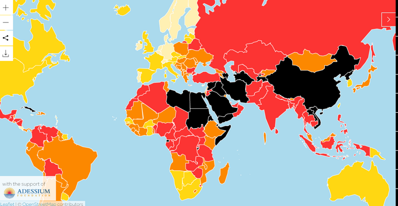 САЩ са на незавидната 45-а позиция, а Русия - чак на 149-о място. В дъното на класацията са Китай, Еритрея, Туркменистан и Северна Корея.