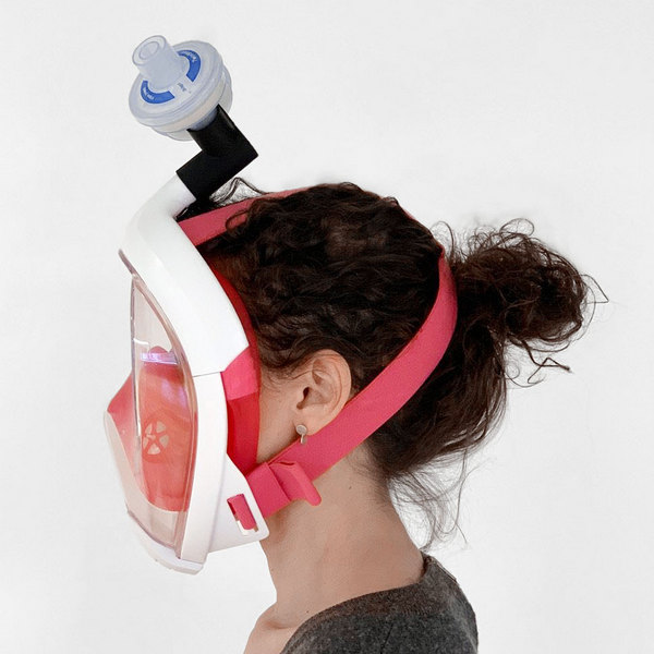 А именно - адаптирани маски за шнорхелинг. Макар на пръв поглед това да изглежда като нескопосан проект тип "направи си сам", той се оказва далеч по-ефективно решение от постоянно недостигащите маски за еднократна употреба.