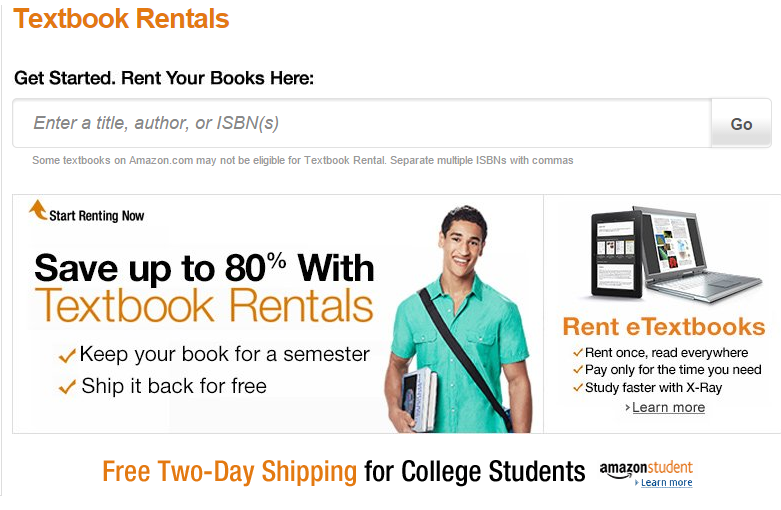 С услугата "textbook rentals" можете да си вземете всяко издание за 30 под наем за Kindle или друг e-четец, подобно на взимането на книга от библиотеката. При взимане под наем има и значителни отстъпки - до -80% от цената, a Amazon често предлагат и безплатни аудио версии. Наемането е много популярно и сред студентите, защото цените на учебниците са доста високи, дори и ако са употребявани.