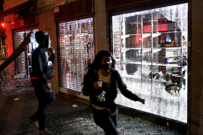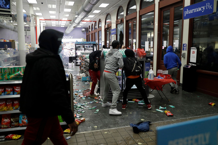 В центъра на Атланта разпръснаха стотици демонстранти със сълзотворен газ. В центъра на Лос Анджелис полицейски автомобил тръгна срещу група протестиращи на улица и събори двата от тях на земята. Наблизо, в Санта Моника, недалече от мирна демонстрация банди нахлуха в магазини, излизайки с кутии с обувки и сгъваеми столове и други предмети. Тълпа разграби аутлет за дрехи в Лонг бийч, като някои от крадците се преобличаха в откраднатите тоалети на улицата.