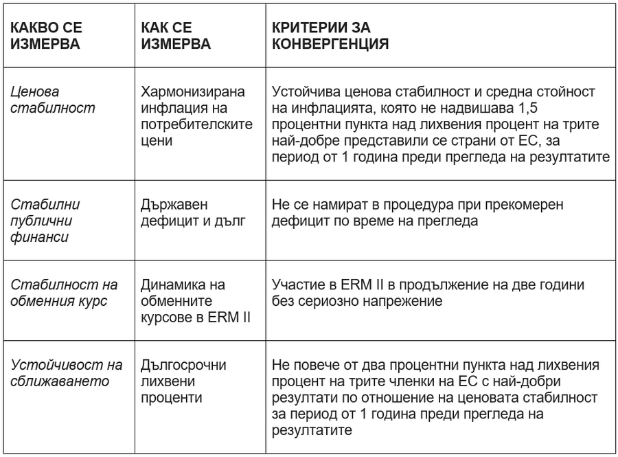 България отговаря на два от четирите икономически критерия, необходими за приемането в еврозоната.